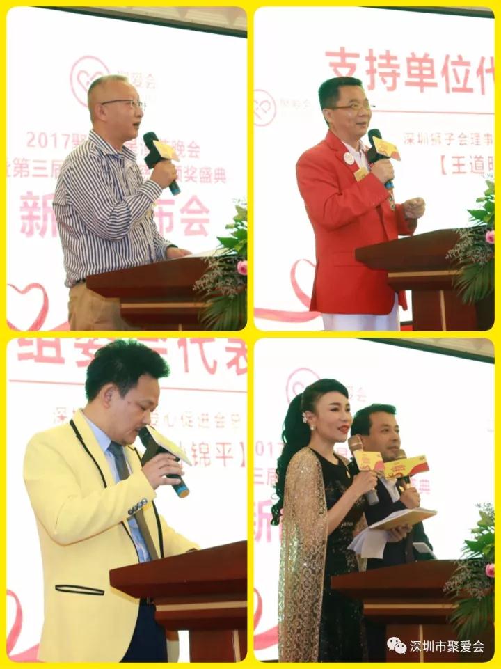 在發(fā)布會上,聚愛會總會常務副秘書長趙安妮介紹了到場嘉賓;顧問委員會主席張紅象發(fā)布2017聚愛群星演藝晚會暨第三屆聚愛公益慈善頒獎盛典評選標準和策劃亮點及七大獎項設定:終身成就獎、愛心公益人士特別貢獻獎、慈善人士杰出貢獻獎、愛心機構卓越貢獻獎、愛心企業(yè)突出貢獻獎、聚愛公益慈善傳承獎、聚愛正能量風云人物獎,并公開面向社會各界評選、推選各獎項的提名。主辦單位深圳市聚愛促進會總會會長陳曉杰動情地介紹了聚愛會成立12年以來的公益慈善愛心歷程,并充分闡述了此次公益慈善頒獎盛典 “聯(lián)益”的重要意義。深圳市慈善會副秘書長董昕、市義工聯(lián)代表汪克非、深圳獅子會理事、分區(qū)主席王道明依次登臺發(fā)言,對歷屆和此次活動表示充分肯定與支持。
